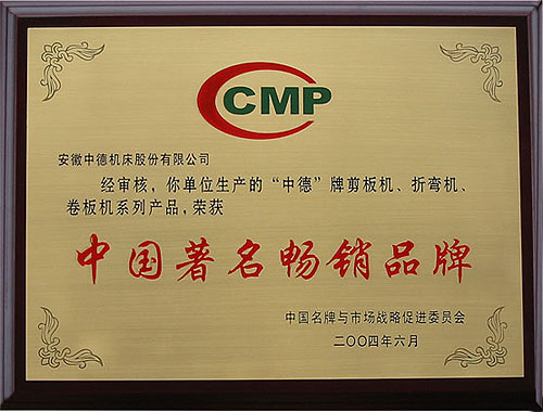 我公司生產(chǎn)的“中德”牌剪板機(jī)、折彎機(jī)、卷板機(jī)等產(chǎn)品由于質(zhì)量穩(wěn)定、市場美譽(yù)度高在本次活動中一舉當(dāng)選。(證書編號:2004MP398)