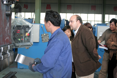 2004年10月27日上午,西班牙羅雷爾公司總經(jīng)理瓊斯·巴拉先生一行來(lái)我公司參觀考察,瓊斯·巴拉先生對(duì)我公司的剪板機(jī)、折彎?rùn)C(jī)等產(chǎn)品非常感興趣并與公司領(lǐng)導(dǎo)洽談了相關(guān)合作意向!