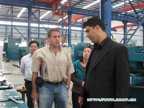 稍事休息,Atila Deniz先生和Mr.Tunc便帶著迫切的心情參觀了中德的各個車間。從裝備車間到大件車間,至電焊車間再到金工車間??腿藢χ械庐a(chǎn)品表現(xiàn)出濃厚的興趣,提出的問題也是相當(dāng)專業(yè)、細致。比如,機床使用材料的鋼號,數(shù)控系統(tǒng)的工作效率等等,無不體現(xiàn)出一個機床消費成熟國的高標(biāo)準(zhǔn)。